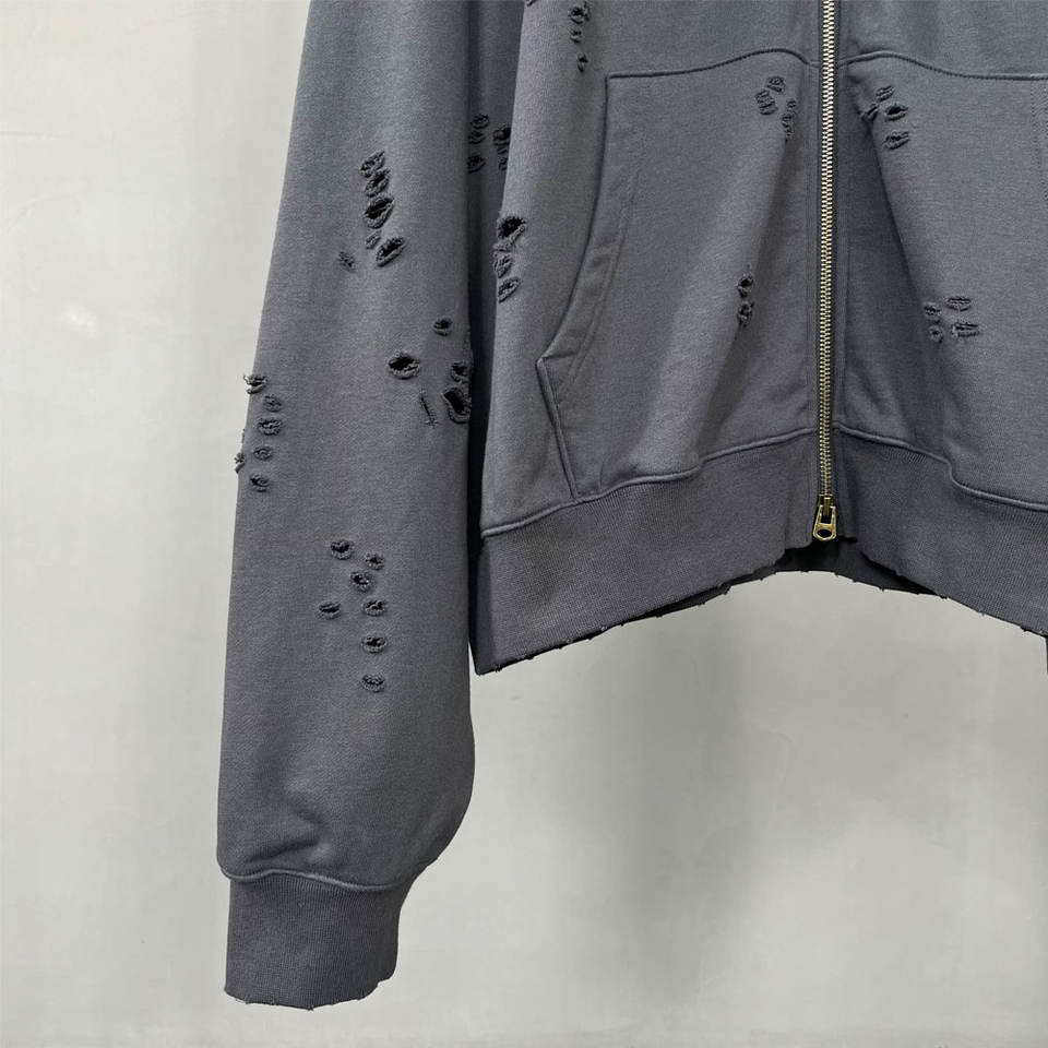 เสื้อสเวตเตอร์คอกลมใส่สบายแบบคลาสสิกเสื้อมีฮู้ดแนวสตรีทซักกรดไซส์ XS มีซิปสไตล์ป้องกันการยับ