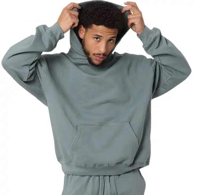 เสื้อฮู้ดดี้เปล่าคุณภาพสูง ออกแบบเอง พิมพ์ลายพัฟ สตรีทแวร์ แบบไม่มีเชือก ทรงหลวม ไหล่ตก สำหรับผู้ชาย