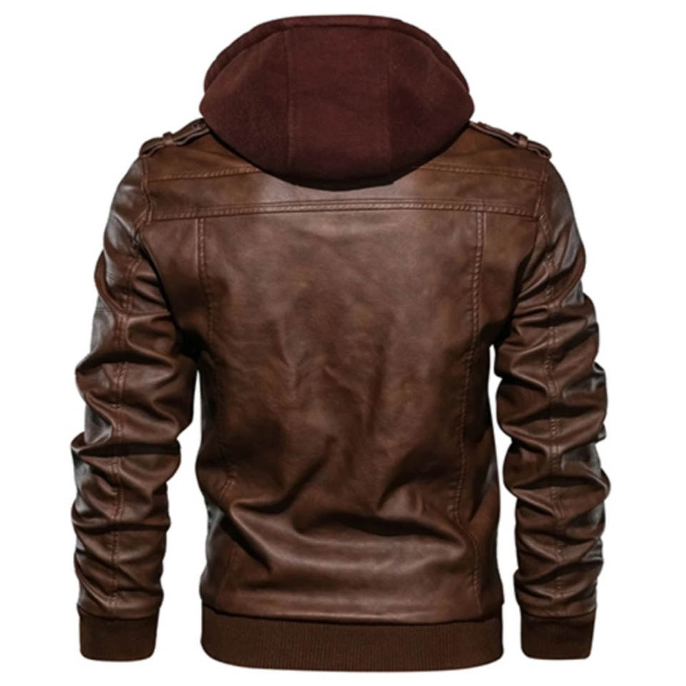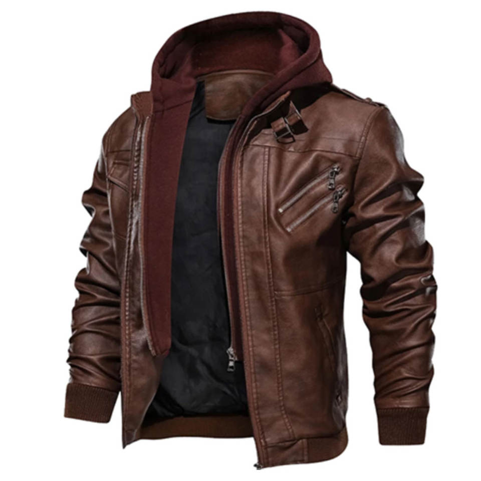 เสื้อแจ็กเก็ตหนังสำหรับผู้ชายเหมาะใส่ได้ทุกขนาดมีซิปด้านหน้าสำหรับขี่กลางแจ้งกันลม