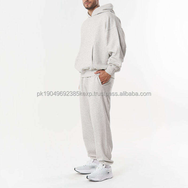 ชุดวอร์มทรงบ็อกซี่คุณภาพสูง โลโก้สั่งทำได้ น้ำหนักเบา ผ้าฝ้ายโอเวอร์ไซส์ 400 450gsm ผ้าฟลีซ เสื้อฮู้ดดี้และกางเกงจ็อกเกอร์สำหรับผู้ชาย
