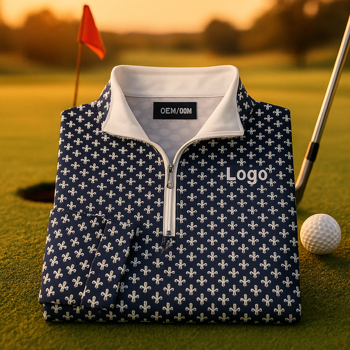 เสื้อกันหนาวมีซิปสำหรับผู้ชายเสื้อสวมหัวสำหรับเล่นกอล์ฟแนววินเทจปรับแต่งโลโก้ได้