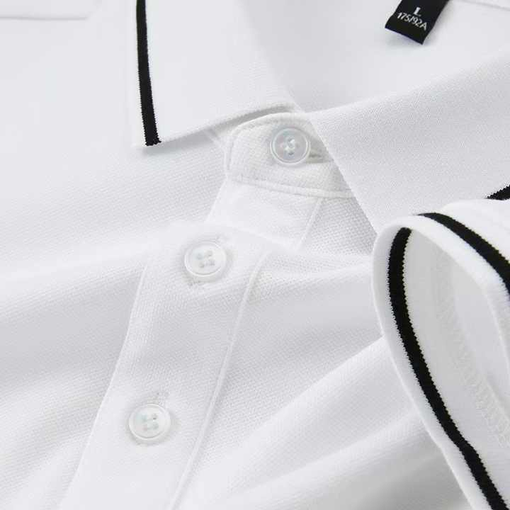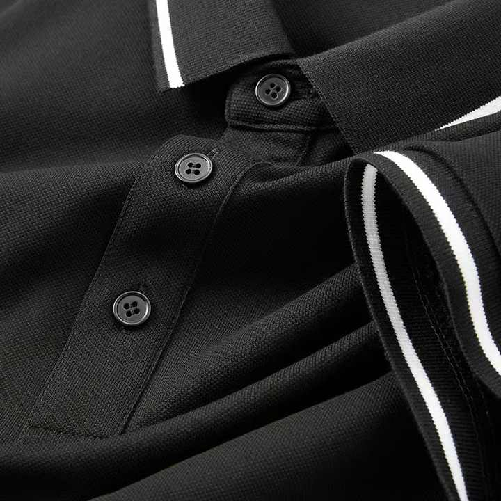 เสื้อโปโลทรงเข้ารูปสำหรับผู้ชายเสื้อโปโลแขนสั้นมีลายออกแบบโลโก้ได้ตามต้องการ