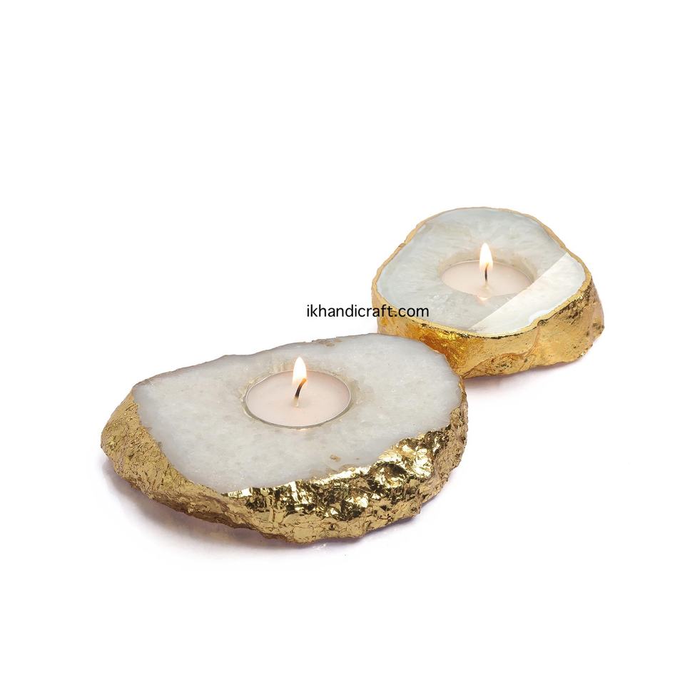 ที่ใส่เทียนชากึ่งมีค่าทำมือปรับแต่งได้ทำด้วยมือขอบทองธรรมชาติอุปกรณ์ตกแต่งบ้านคริสมาสต์
