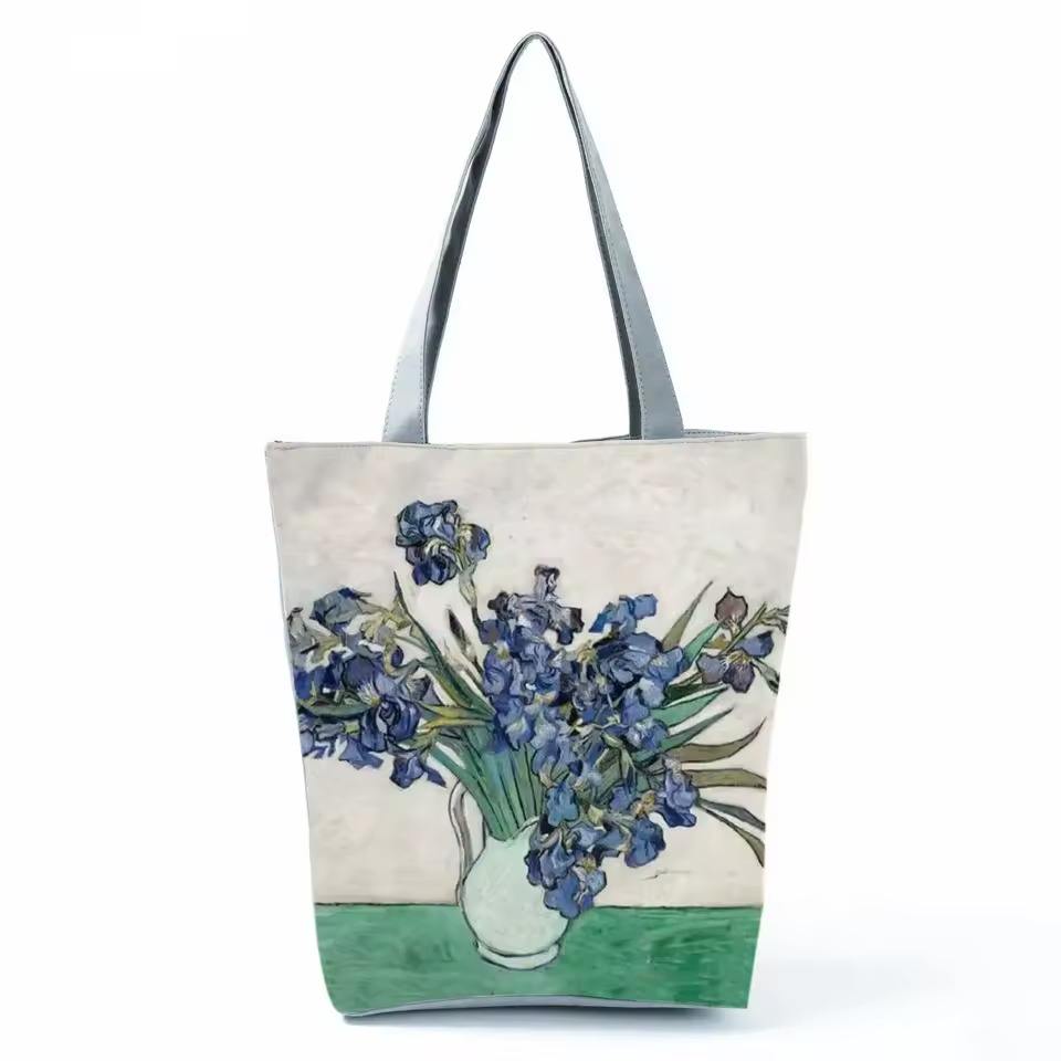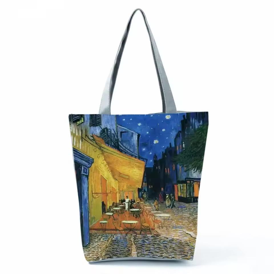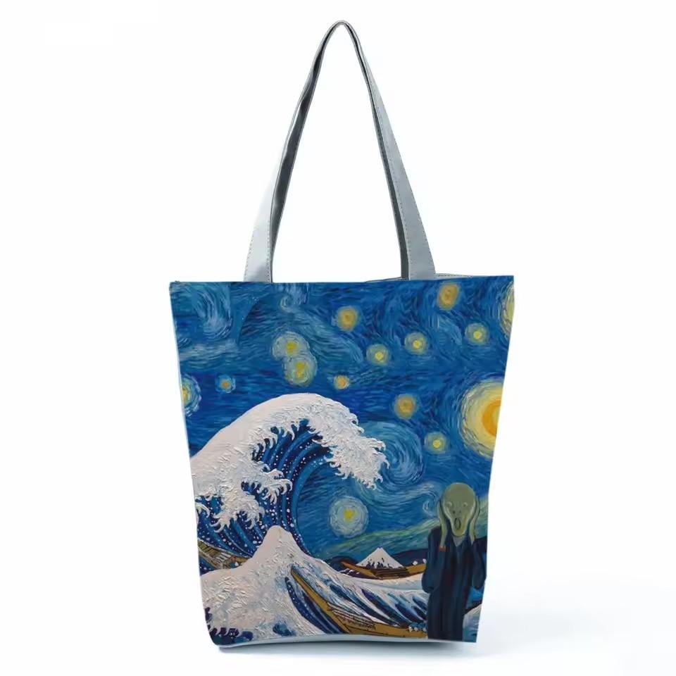 กระเป๋าโท้ทพิมพ์ลายงานศิลปะแบบปรับแต่งได้คุณภาพสูงสำหรับผู้หญิงสไตล์วินเทจหนังซับในแบบเปิด