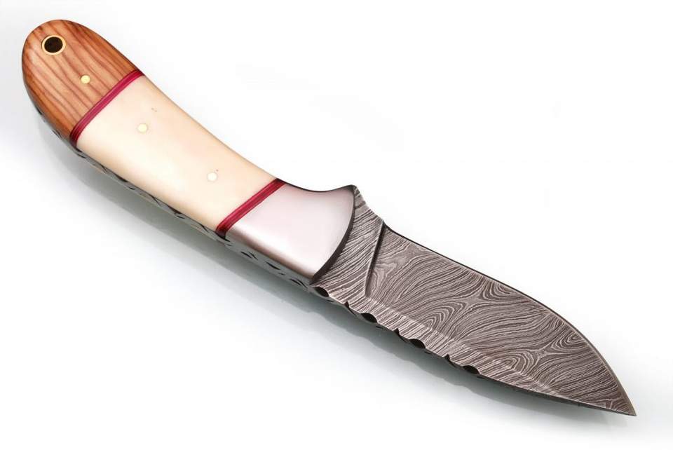 มีดล่าสัตว์ทำจากเหล็กดามัสกัสปรับแต่งได้มีดปลอกหนังแบบมีกระดูก/ไม้/เหล็ก
