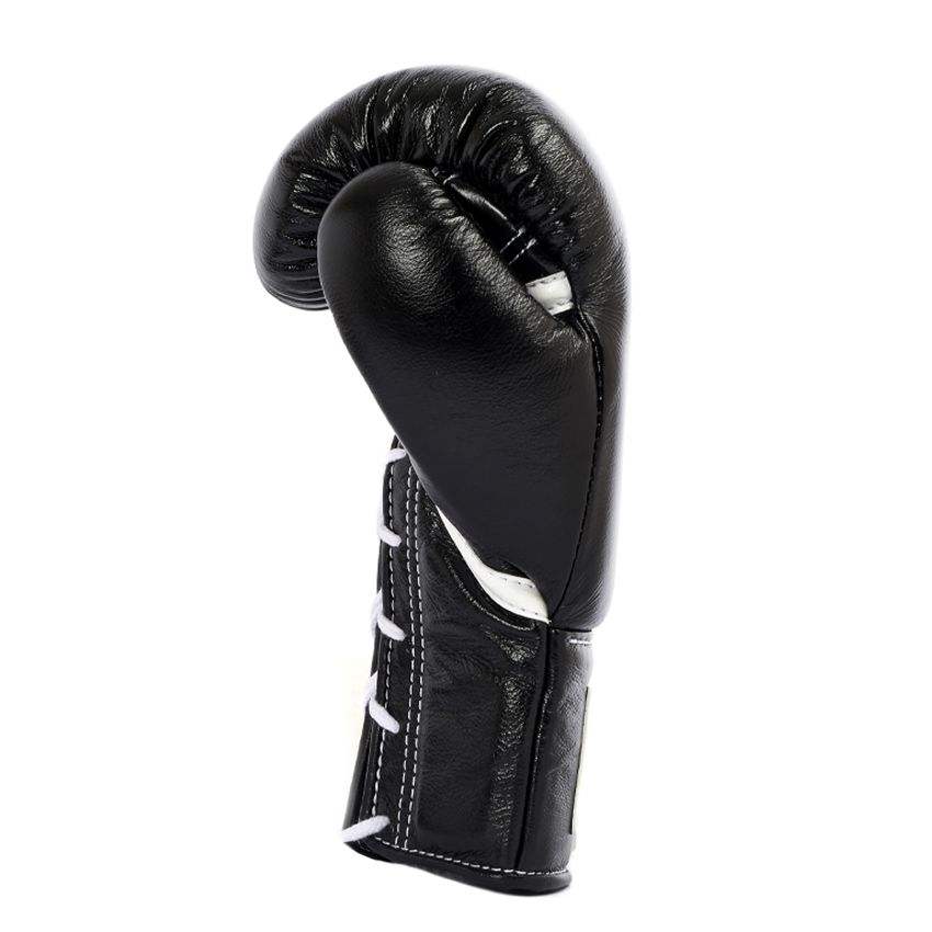 ถุงมือชกมวยมืออาชีพสีดำแบบปรับแต่งได้หนังแท้เกรดสูงสำหรับฝึกซ้อมต่อสู้ศิลปะการต่อสู้