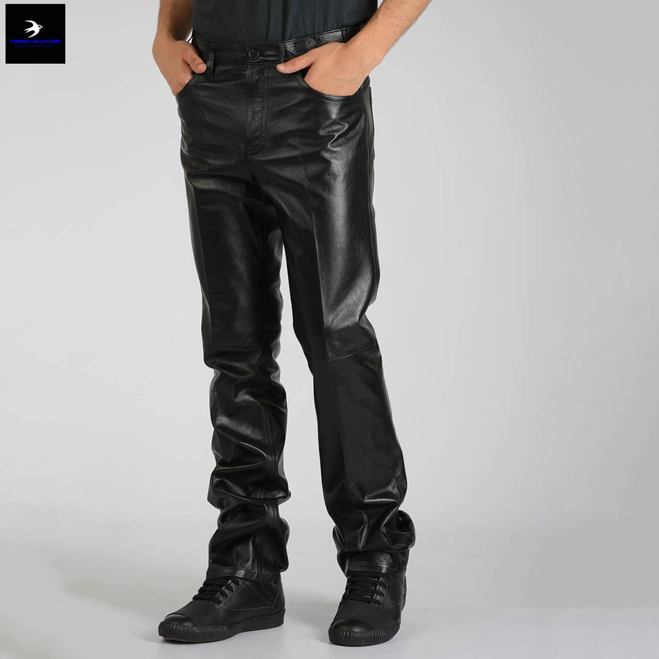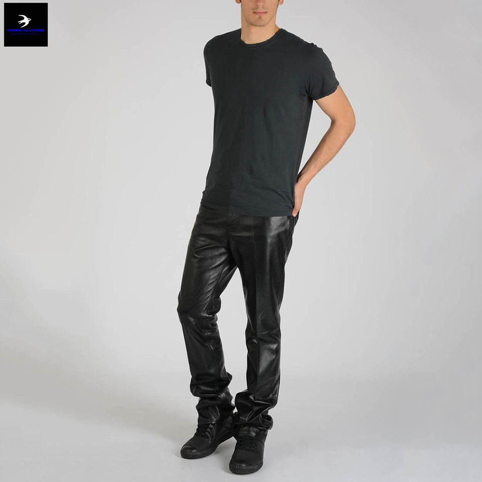 กางเกงคาร์โก้ของผู้ชายกางเกงหนังเอวตรงแบบลำลองออกแบบโลโก้ได้ตามต้องการ