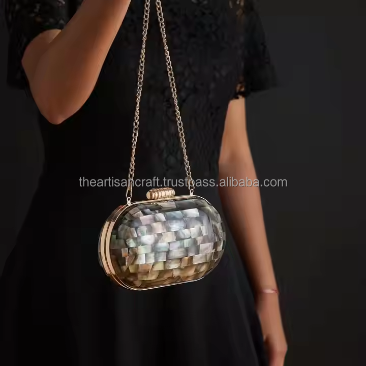 กระเป๋าคลัทช์ทำมือประดับมุกคุณภาพสูง ปรับแต่งได้ กระเป๋าถือมุกธรรมชาติ ใช้ได้ทุกวัน แฟชั่นวินเทจสำหรับสุภาพสตรี งานฝีมือ