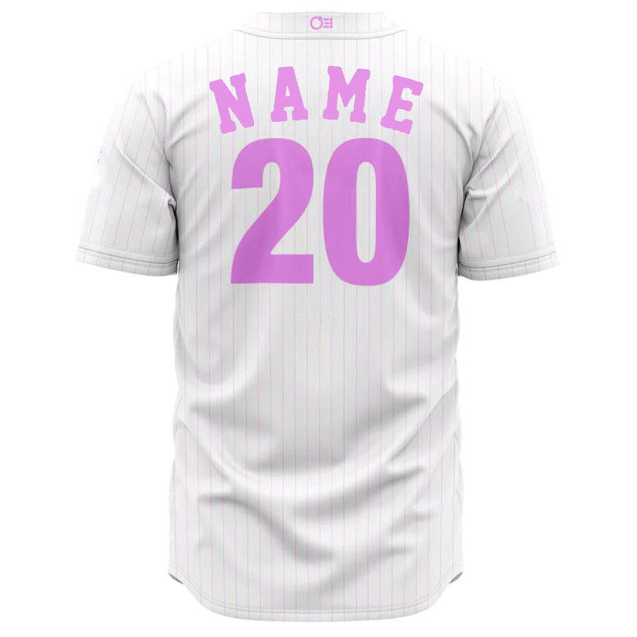 เสื้อเบสบอลสีชมพูคุณภาพสูง ปรับแต่งได้ ผลิตด้วยเทคนิคซับลิเมชั่น ผ้าโพลีเอสเตอร์ ระบายอากาศได้ดี เหมาะสำหรับกีฬาซอฟต์บอล ทุกเพศ ทุกวัย ด้านหน้า