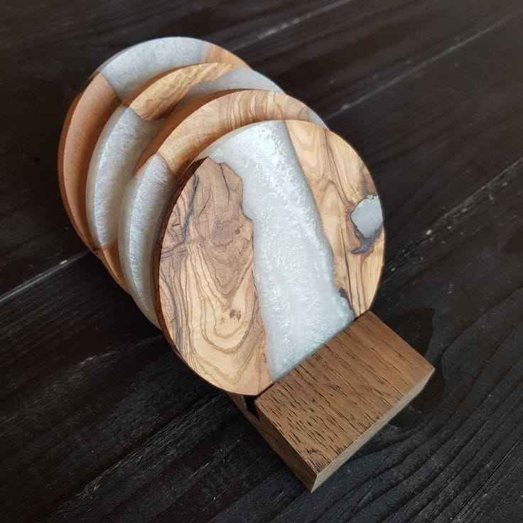 ชุดถาดรองแก้วเรซินอีพ็อกซี่ทรงกลมปรับแต่งได้งานหัตถกรรมตกแต่งบ้านโปรโมชั่นพรีเมี่ยมทนทานทันสมัยขัดเงา
