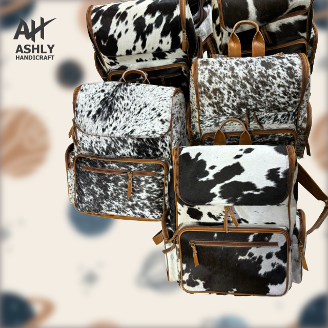 แฟชั่นใหม่กระเป๋าเป้หนังวัวขนเฟอร์มือเครื่องมือมีสไตล์หลายกระเป๋ามีซิปกระเป๋าเป้สะพายหลังหนังสไตล์ตะวันตก