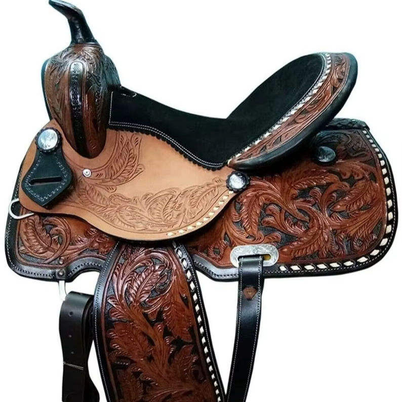 High Quality Customizable Western Saddle Genuine Leather Imported Barrel Racing Equestrian Horse Riding Wood Tree Brass SIALKOT