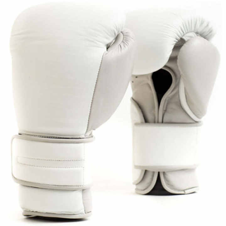 ชุดถุงมือชกมวยสีขาวปรับแต่งได้พร้อมสายรัดข้อมือหนัง