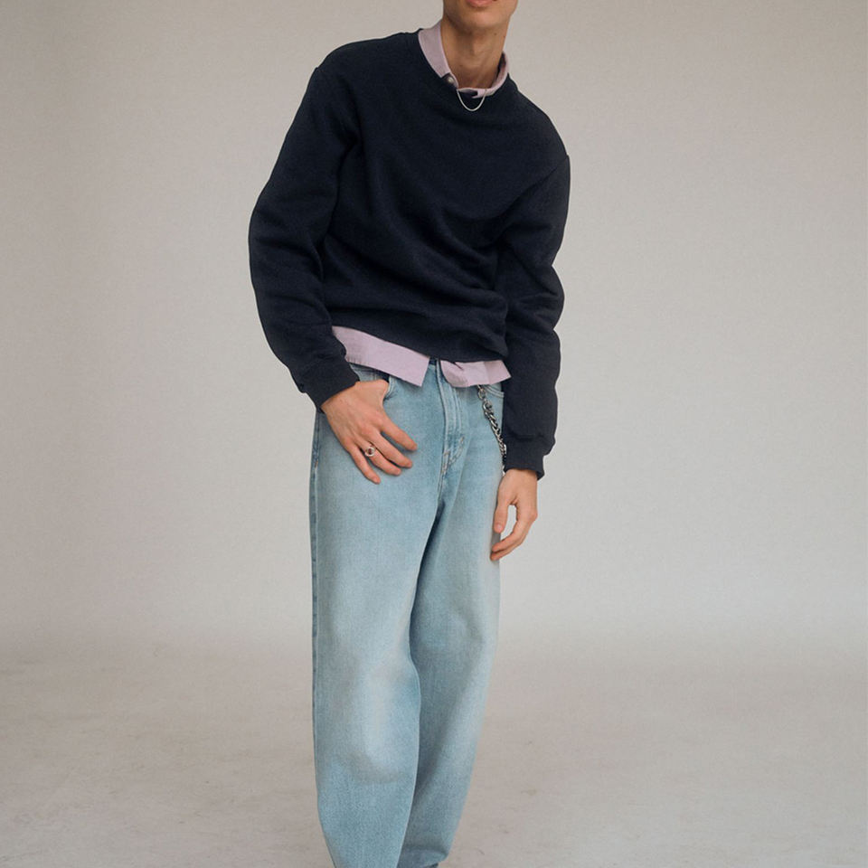 สเวตเชิ้ตคอกลมสีฟ้าสำหรับผู้ชายทำจากผ้าฝ้าย100% สูงออกแบบได้ตามที่ต้องการ