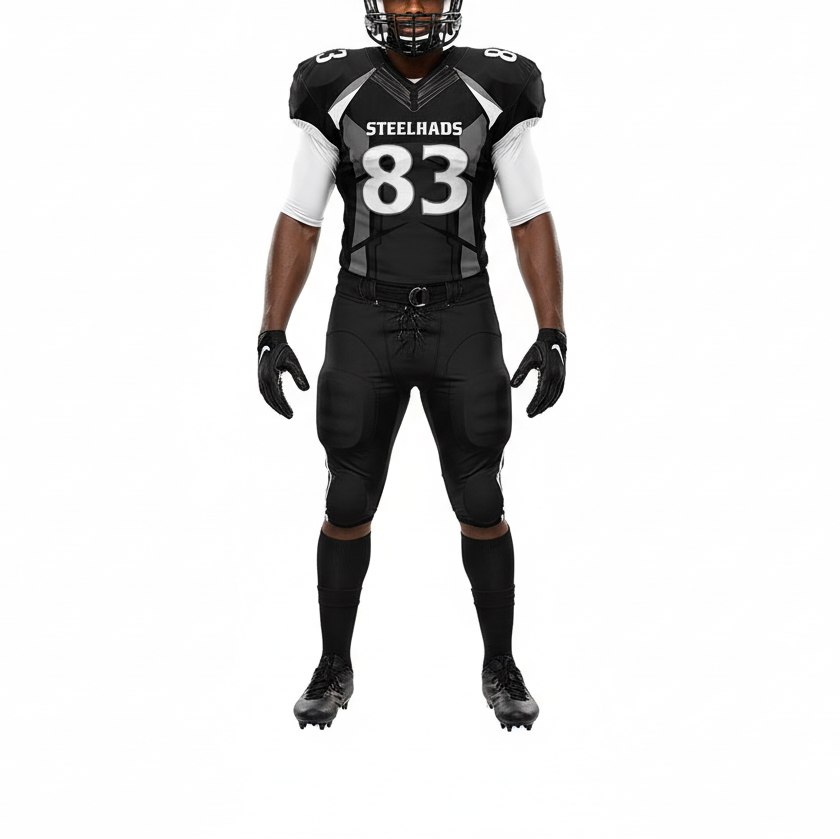 ชุดยูนิฟอร์มอเมริกันฟุตบอลคุณภาพสูงสั่งทำพิเศษ ระบายอากาศได้ดี สำหรับผู้ชาย ผ้าโพลีเอสเตอร์ 100% แบบซับลิเมชั่น แขนสั้น ไซส์ใหญ่