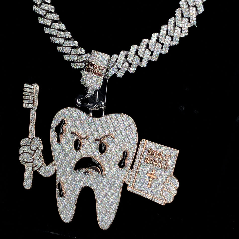 คุณภาพสูงที่กำหนดเองจี้ป้องกันทันตกรรมสีขาวทองใสอัญมณีเพชรอัญมณีสำหรับงานเลี้ยงและงานแต่งงาน