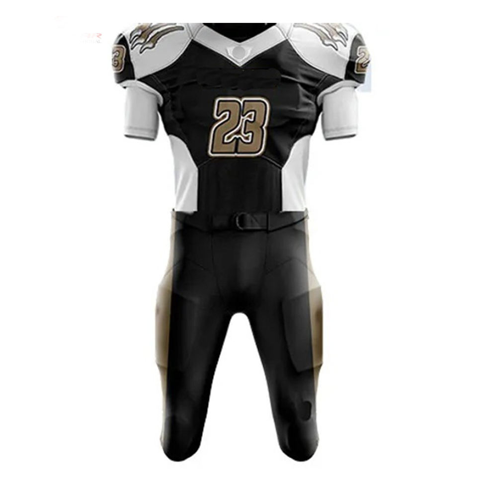 ชุดอเมริกันฟุตบอลออกแบบเองคุณภาพสูง พิมพ์ลายแบบระเหิด แห้งเร็ว ระบายอากาศได้ดี แขนสั้น