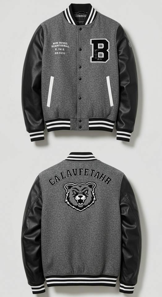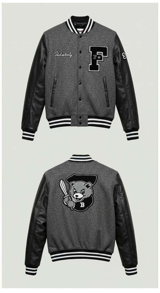 แจ็คเก็ตวาร์ซิตี้สไตล์เลตเตอร์แมนบอมเบอร์สำหรับผู้ชายแบบปรับแต่งได้ ผ้าแคนวาส แห้งเร็ว ระบายอากาศดี คอวี พร้อมโลโก้โรงงาน