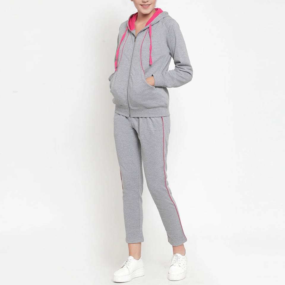 ชุดวอร์มผู้หญิงแบบมีฮู้ด ผ้าฟลีซคุณภาพสูง ผลิตตามสั่ง 100% ผ้าฝ้าย สีพื้น ขายดี