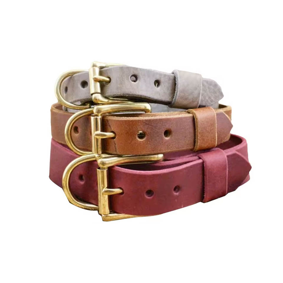 ปลอกคอสุนัขแบบปรับแต่งเองได้ปลอกคอสุนัขแฟชั่นหรูหราหนังแท้ประดับหมุดโลหะหัวเข็มขัดแข็ง