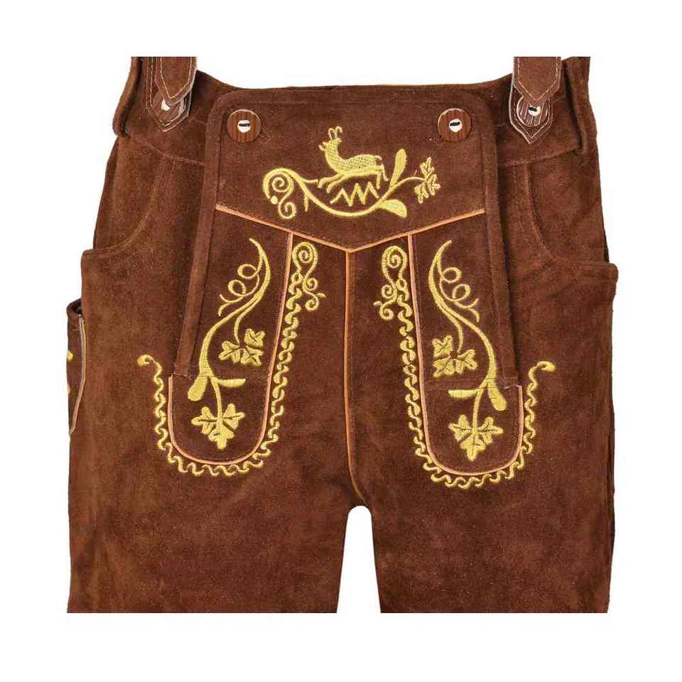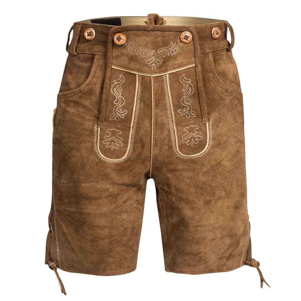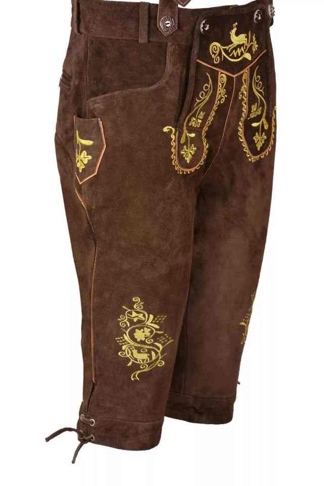 กางเกงขาสั้นหนังวัวสไตล์บาวาเรียปักลายสำหรับใส่แสดงในงานเทศกาลเยอรมัน