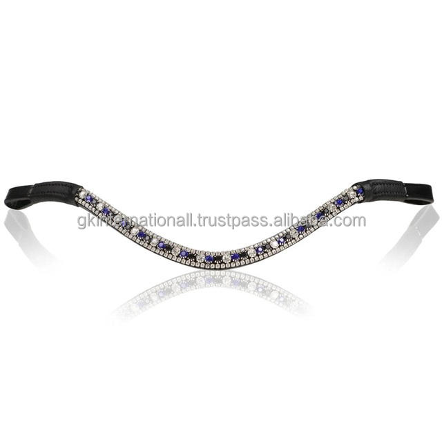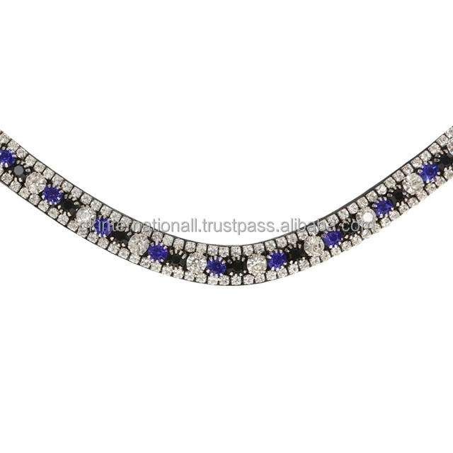สายคาดหน้าผากม้าหนังแท้คุณภาพสูงแบบสั่งทำพิเศษ ประดับคริสตัลและโซ่หรูหรา สำหรับม้าขี่แบบเดรสสาจ