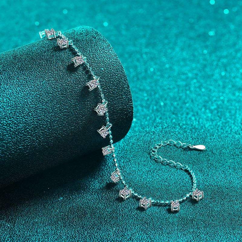 สร้อยเทนนิสสำหรับผู้หญิงสร้อยข้อมือเพชรโมอิสทรงกลมสีเงินสเตอร์ลิงประดับ S925ปรับแต่งได้