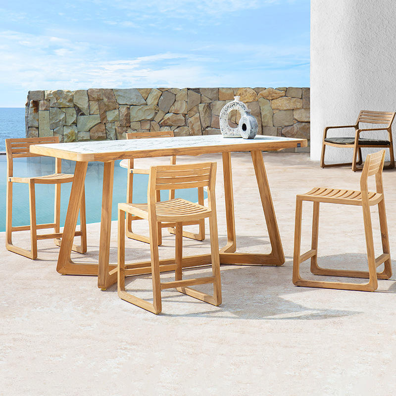 เก้าอี้สูงทำจากไม้สักกลางแจ้งเก้าอี้สูงสำหรับลานบ้านเฟอร์นิเจอร์ในสวนปรับแต่งได้