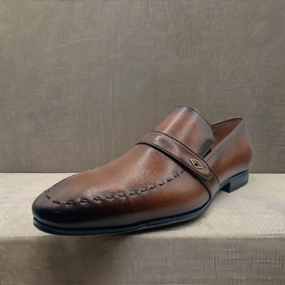 รองเท้าหนังแท้สำหรับผู้ชายแบบสลิปออนรองเท้าลำลองสำหรับผู้ชายรองเท้าโลโก้ออกแบบได้ตามต้องการรองเท้าโลฟเฟอร์สีน้ำตาล