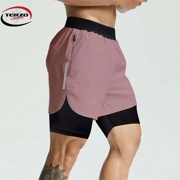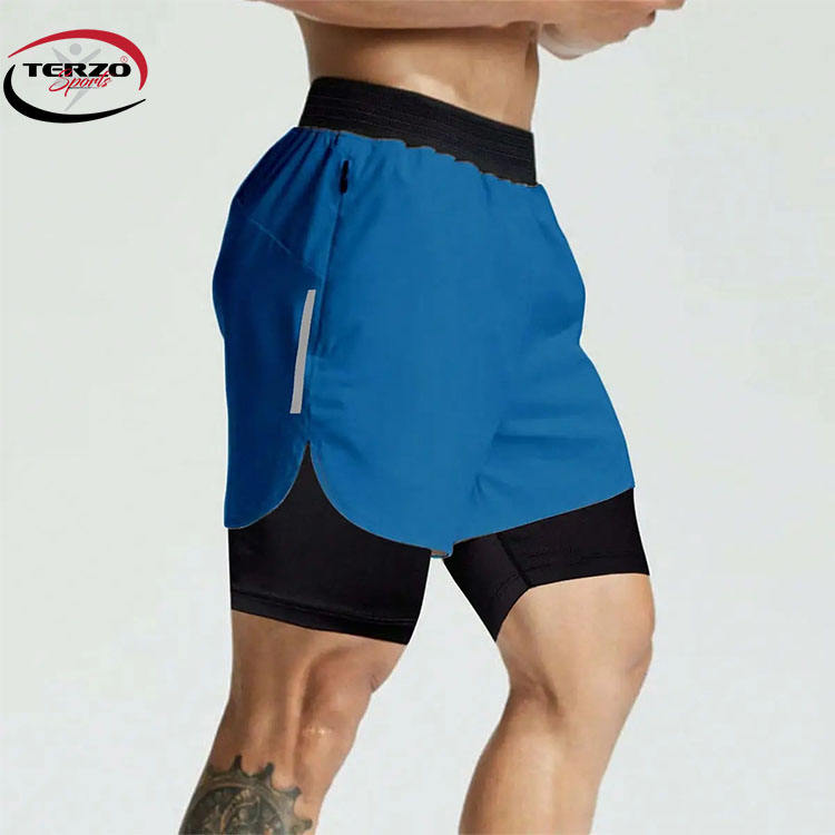 กางเกงขาสั้นยิมที่กําหนดเองคุณภาพสูง 2 ใน 1 โพลีเอสเตอร์กางเกงขาสั้นกลางแจ้งแห้งเร็ววิ่งกางเกงขาสั้นยิมบุรุษติดตั้ง