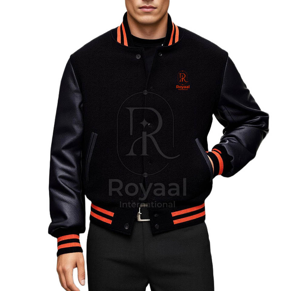 เสื้อแจ็คเก็ตเลตเตอร์แมนคุณภาพสูงสั่งทำพิเศษพร้อมโลโก้ เสื้อผ้าแฟชั่นขายดี แขนหนัง สำหรับผู้ชาย