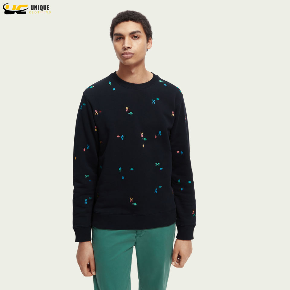 เสื้อกันหนาวแบบแขนเต็มปักสำหรับผู้ชาย,เสื้อสเวตเตอร์แขนยาวสำหรับผู้ชายพิมพ์โลโก้ออกแบบใหม่ได้ตามต้องการ