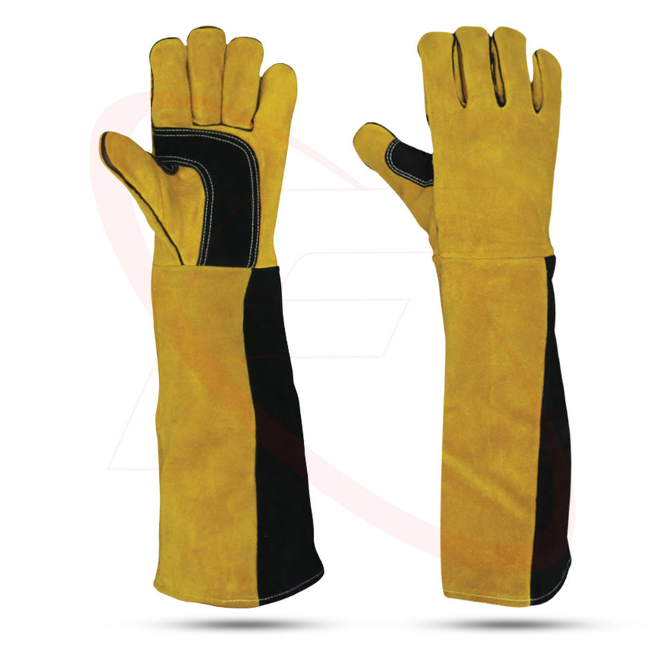 ถุงมือทํางานเพื่อความปลอดภัยข้อมือยาวแบบกําหนดเองคุณภาพสูงสําหรับผู้ชายขายส่งถุงมือเชื่อมทนความร้อนถุงมือหนังจากปากีสถาน
