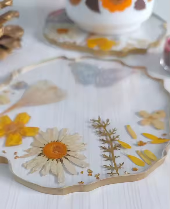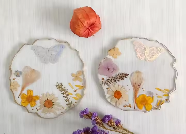 ที่รองแก้วเรซินหรูหราออกแบบพิเศษสำหรับถ้วยชาและกาแฟเป็นมิตรกับสิ่งแวดล้อมขนาดและตัวเลือกสีงานฝีมือเรซิน