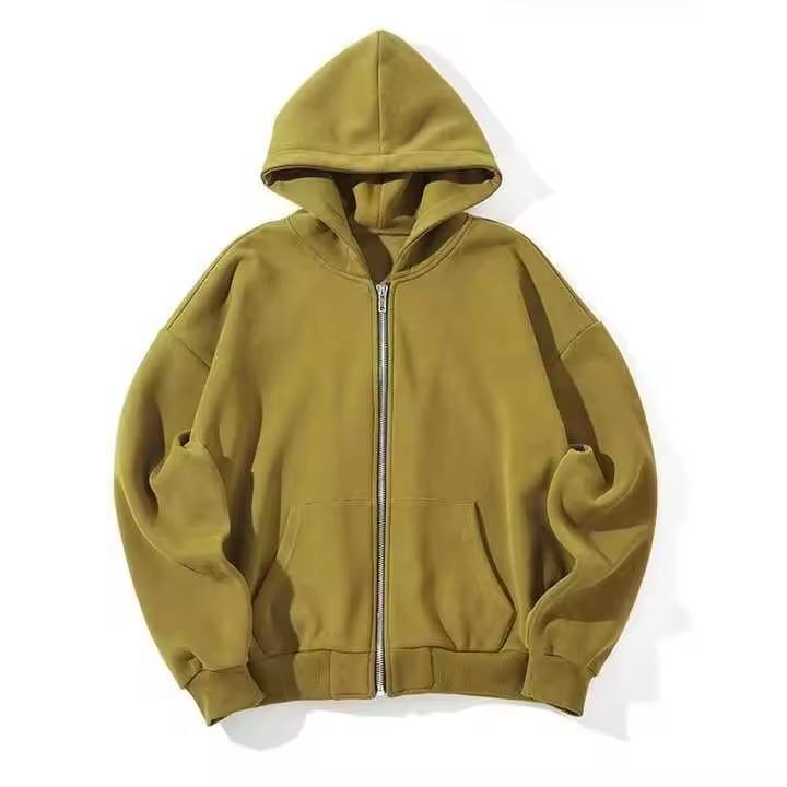เสื้อฮู้ดดี้ผู้ชายทรงบ็อกซี่โอเวอร์ไซส์แบบซิป คุณภาพสูง สไตล์สตรีทแวร์ ล้างสีแบบแอซิดวอช ทำสีซีดแบบดิสเทรส ผ้าฝ้าย 100% สำหรับฤดูหนาว