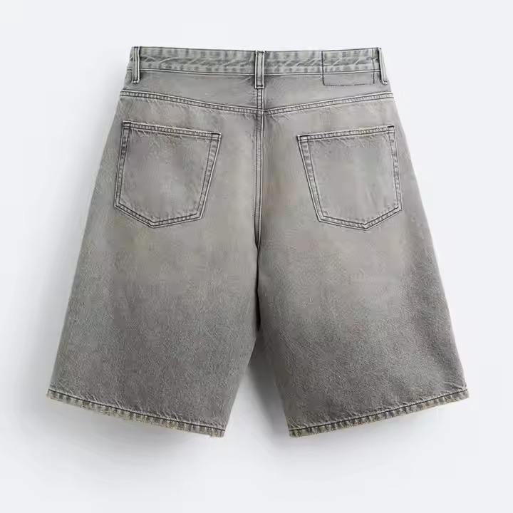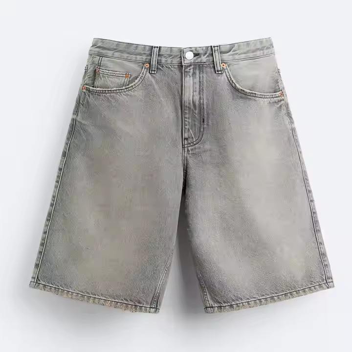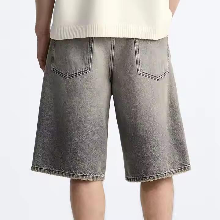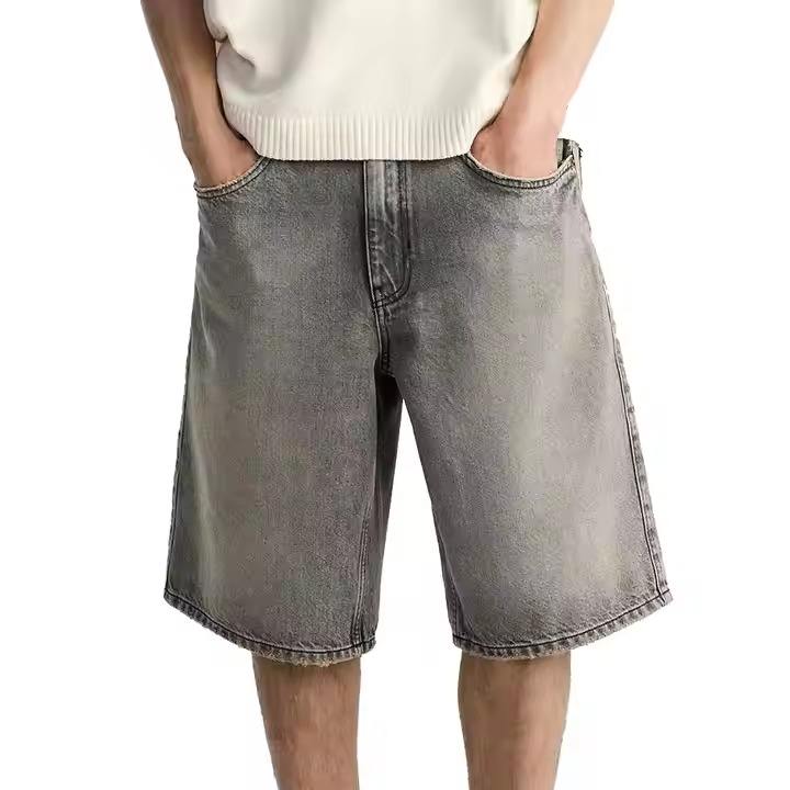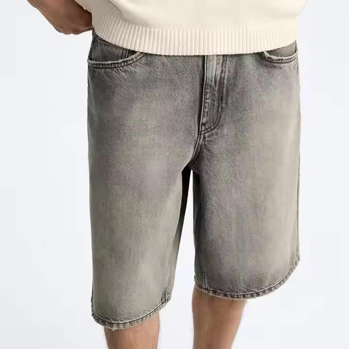 กางเกงขาสั้นผ้ายีนส์เบอร์มิวดาเข้ารูปพอดีตัวสำหรับผู้ชายผ้าปักสไตล์ลำลองระบายอากาศ