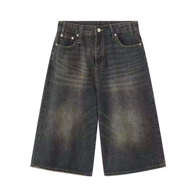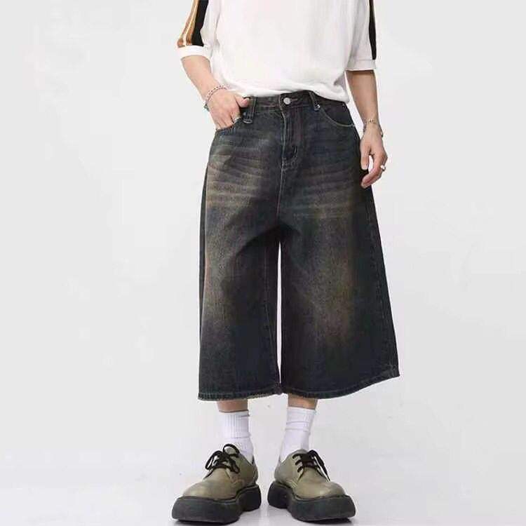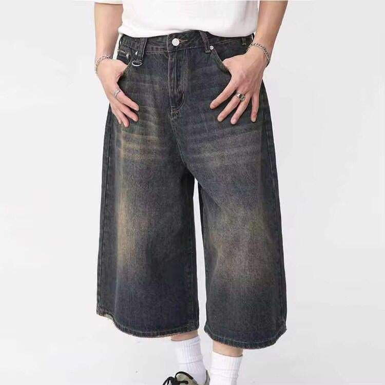 กางเกงขาสั้นผ้ายีนส์สำหรับผู้ชายกางเกงขาสั้นสไตล์ฮิปฮอปทรงหลวมซักหนักแบบสั่งทำ