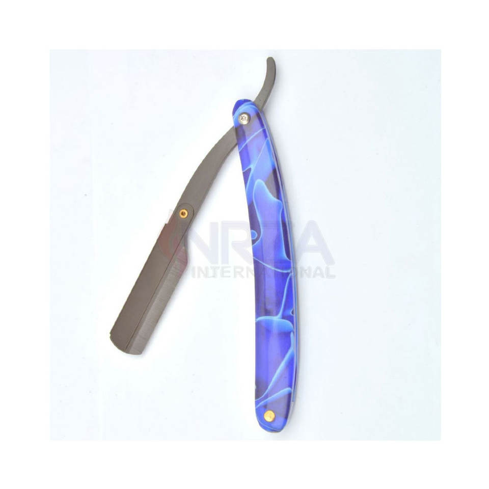 มีดโกนสเตนเลสสตีลแบบพับได้ด้ามจับอะคริลิคขอบตรงสำหรับตัวใบหน้ามีดโกนปลอดภัยแบบใช้แล้วทิ้ง