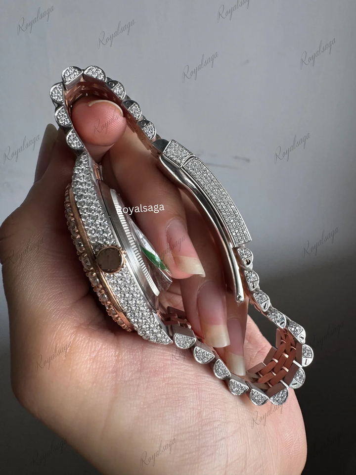 นาฬิกาข้อมือผู้ชายแบบกำหนดเองได้ ตัวเรือนสแตนเลสสตีลขนาด 41 มม. ฝังเพชรโมอิสซาไนต์ VVS เต็มหน้าปัด กระจกแซฟไฟร์ กลไกจักรกลญี่ปุ่น