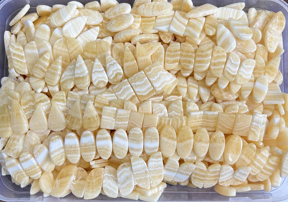 อัญมณีทรงหลังเบี้ยแบบหลวมสำหรับทำเครื่องประดับอัญมณีสีเหลืองแคลไซต์คริสตัลตามธรรมชาติที่กำหนดเอง