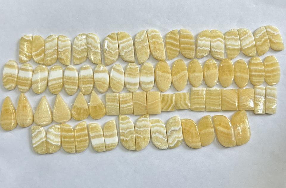 High Quality Natural Yellow Calcite Pair Loose Gemstone Cabochon