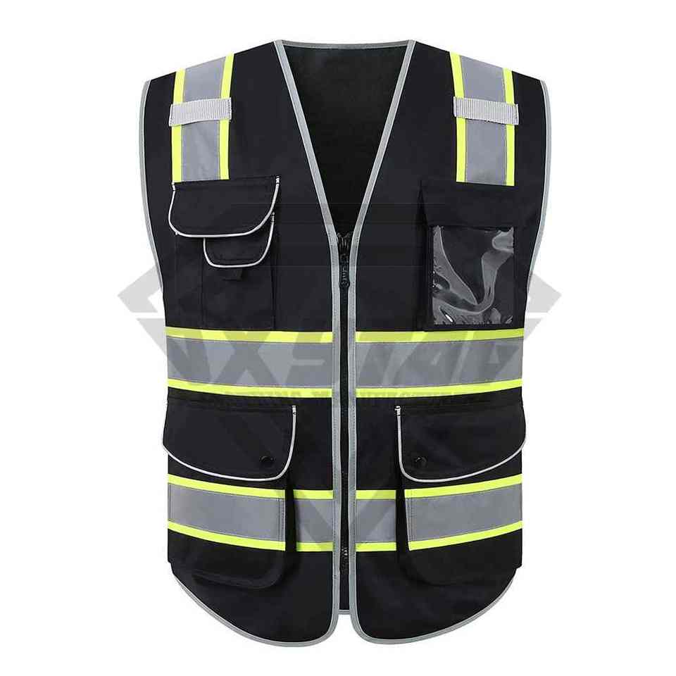 เสื้อกั๊กผ้าไนลอนทนไฟหลายกระเป๋าสำหรับงานถนนเสื้อกั๊กนิรภัยสะท้อนแสงแบบปรับแต่งได้