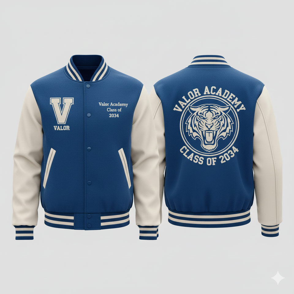แจ็คเก็ตวาร์ซิตี้ผู้ชายสีน้ำเงินเข้มคุณภาพสูงสั่งทำพิเศษ สวมใส่สบาย ไซส์ใหญ่ ตัวเสื้อทำจากผ้าขนสัตว์ แขนเสื้อทำจากหนัง คอตั้ง สีสั่งทำได้