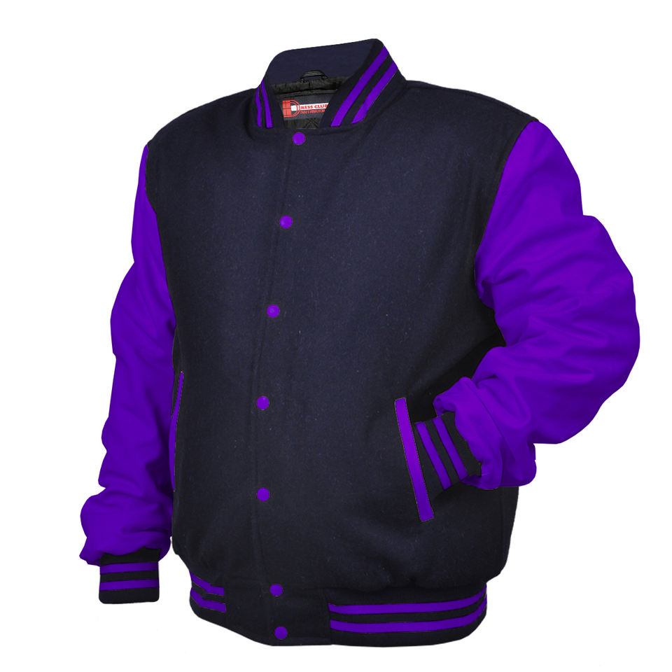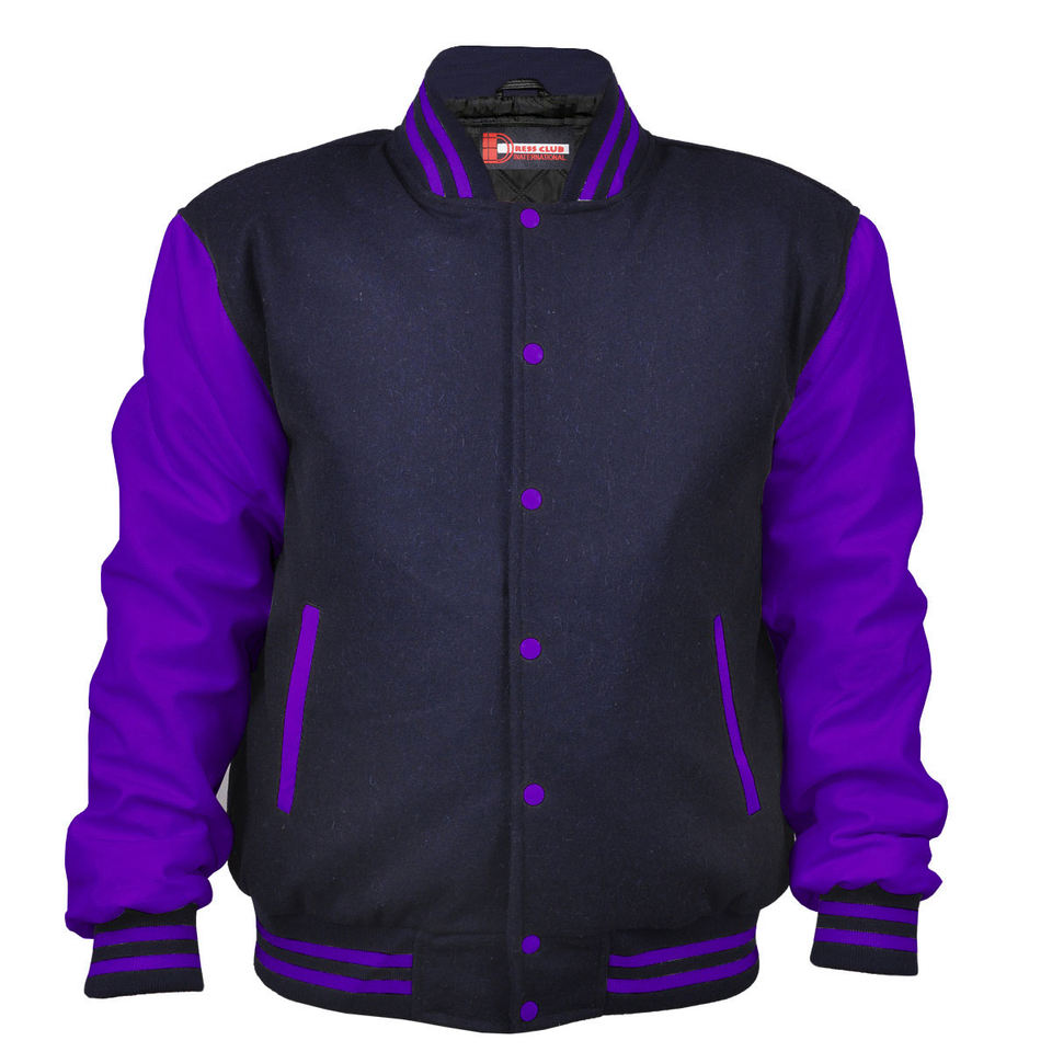 แจ็คเก็ตวาร์ซิตี้ผู้ชายคุณภาพสูงสั่งทำพิเศษ ทรงเข้ารูป สวมใส่สบาย ไซส์ใหญ่ ตัวเสื้อทำจากผ้าขนสัตว์ แขนเสื้อทำจากหนัง คอตั้ง สีสั่งทำได้