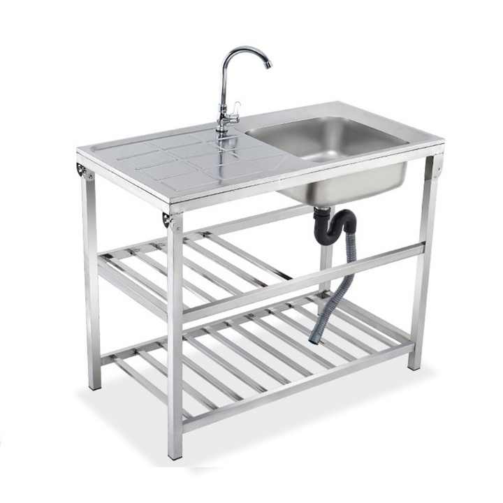 อ่างล้างมือสแตนเลสแบบกำหนดเองคุณภาพสูง อ่างล้างมือแบบพกพาสำหรับครัวกลางแจ้ง พร้อมชั้นวางใต้โต๊ะสองชั้น รูปทรงสี่เหลี่ยม