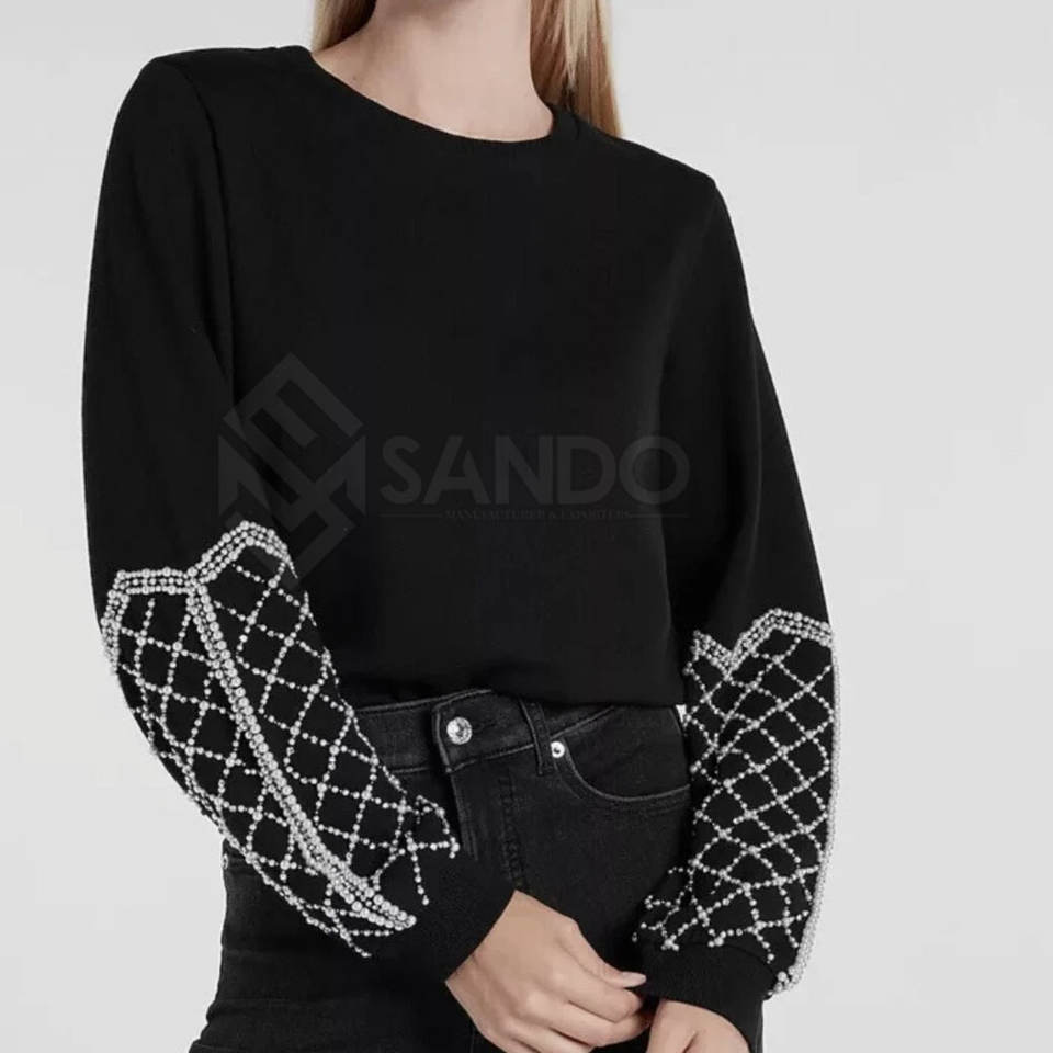 เสื้อสเวตเชิ้ตประดับพลอยเทียมสำหรับผู้หญิง