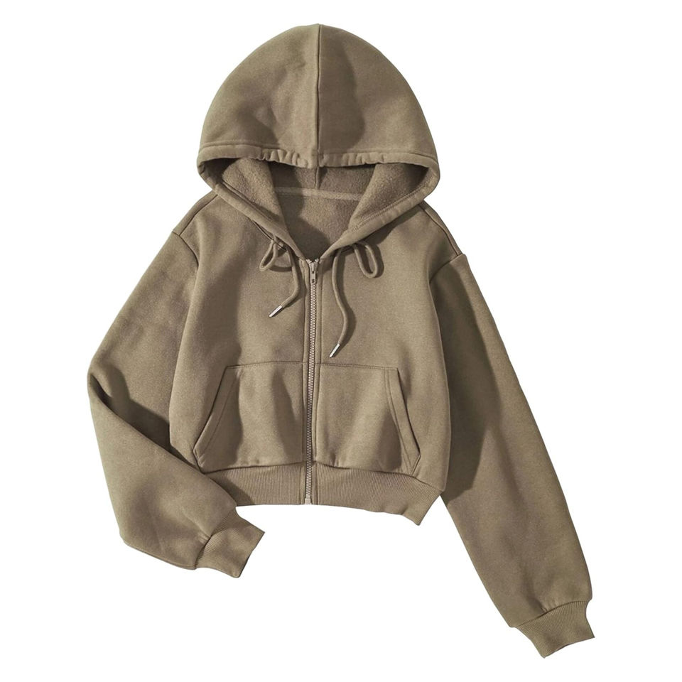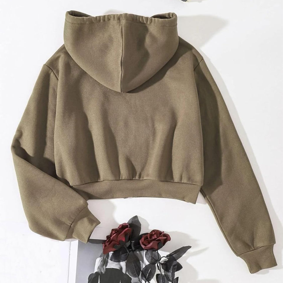 สเวตเชิ้ตมีฮู้ดของผู้หญิงเสื้อสเวตเตอร์มีฮู้ดสำหรับฤดูใบไม้ร่วงความยาวสั้นด้านหน้าแนวสตรีทซับในฤดูหนาวพิมพ์ลาย