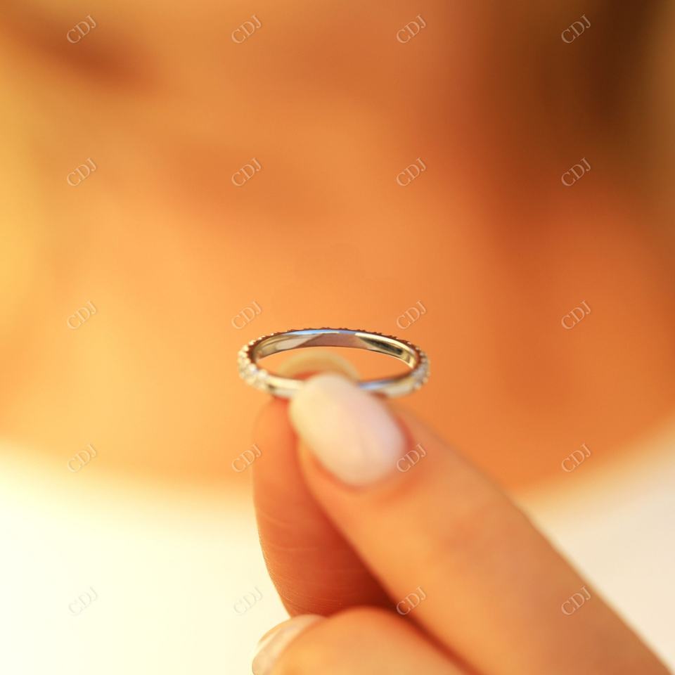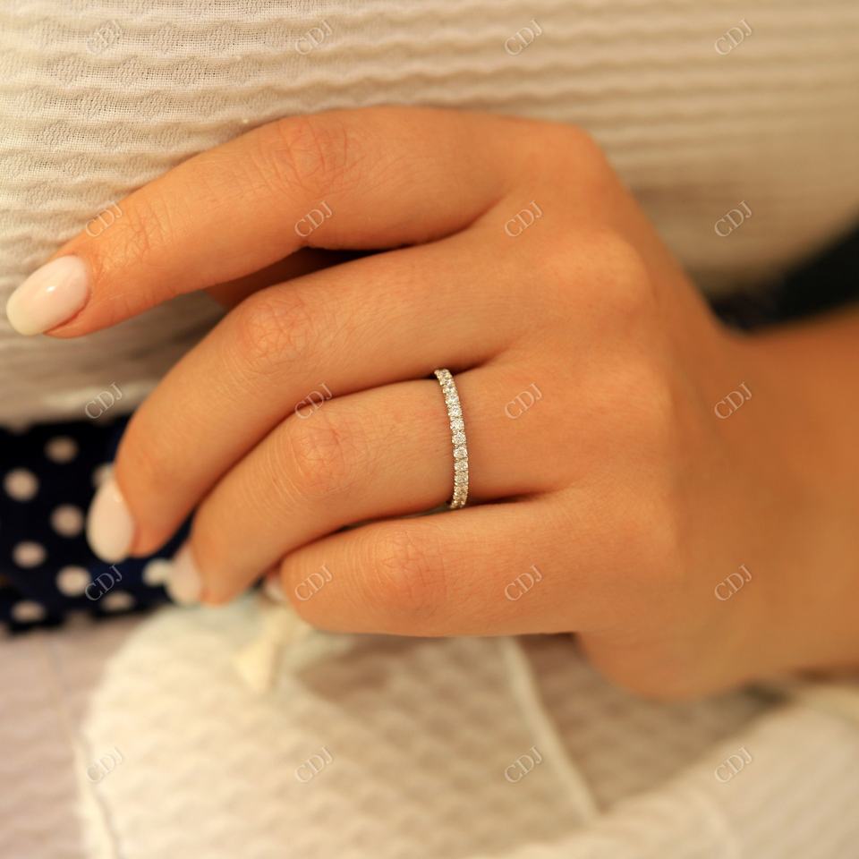 แหวนแต่งงานแบบครึ่งวง ทองคำขาววินเทจ ประดับเพชรโมอิสซาไนต์คุณภาพสูง ตัวเรือนแบบ Prong Set ราคาขายส่งจากโรงงาน