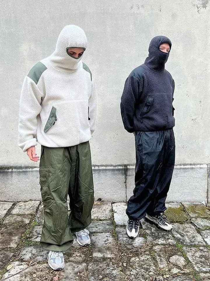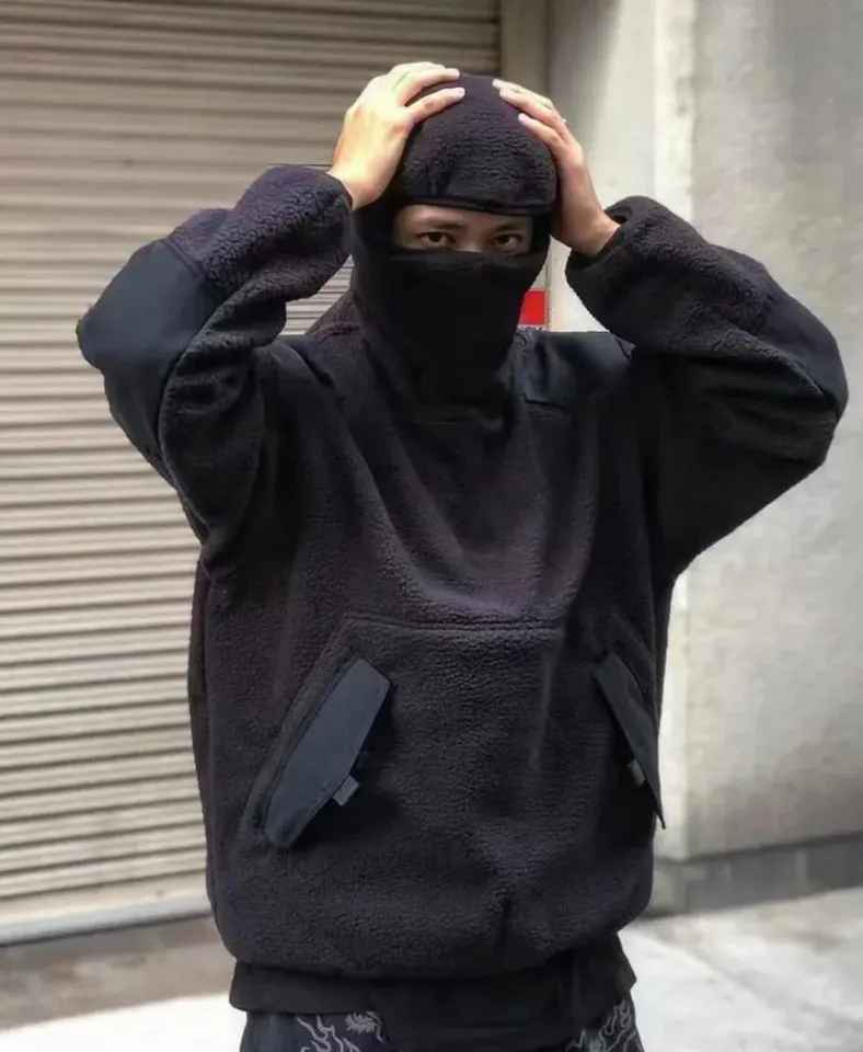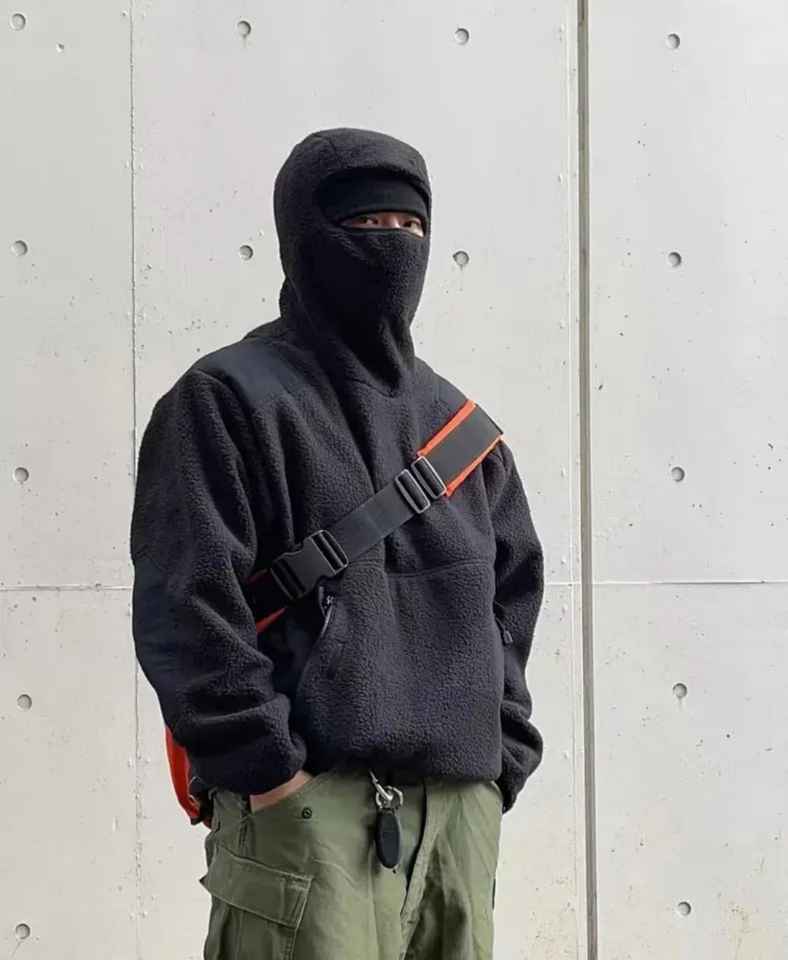 แผ่นปะเย็บและตัดแบบกำหนดเองหน้ากากซิปแบบเต็มหน้ามีฮู้ด500 100% GSM ผ้าฟลีซโพลีเอสเตอร์สวมหน้ากากนินจาเชอร์ปา