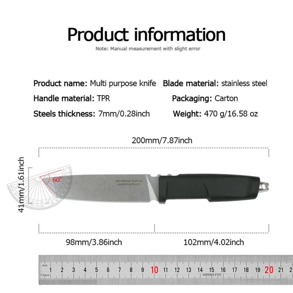มีดต่อสู้คุณภาพสูง DIY ใบมีดตรงสแตนเลส ด้ามจับยาง หนา 7 มม. รับประกัน 1 ปี ปรับแต่งได้ พกพาสะดวก